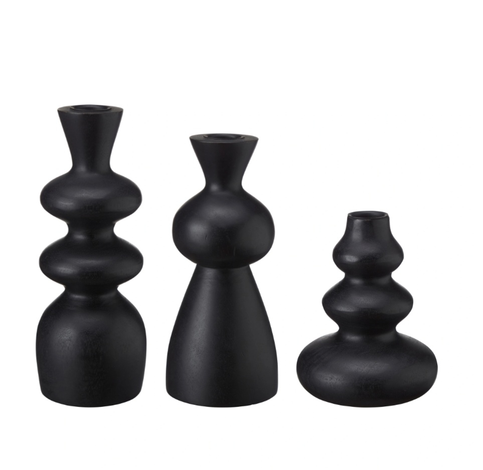 Set format din 3 sfesnice din lemn de dimensiuni diferite.